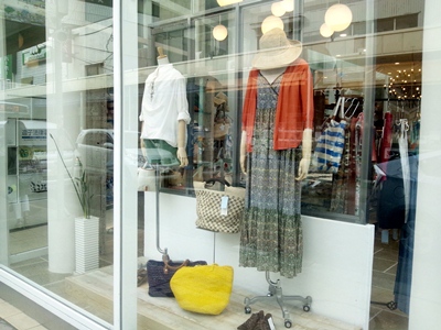 写真は今日のウインドウ写真。日中撮影すると、映りこみが多くて・・・ でも、商店街の様子も伝わって、一石二鳥! と思うことにしましょう。 とはいえ、映りこみがひどくて分かりにくいので、、、分かりやすいものだけご紹介を。 ボディの右側のマキシワンピースは、夏らしく、雰囲気のある一着。 一枚で、シンプルな羽織りものを羽織ってもよし、カットソー等と重ね着を楽しんでも良し。 アシェットのもので、¥18900(税込) 詳しくはコチラをご覧ください。 ※assietteは、40サイズでMサイズです。 |