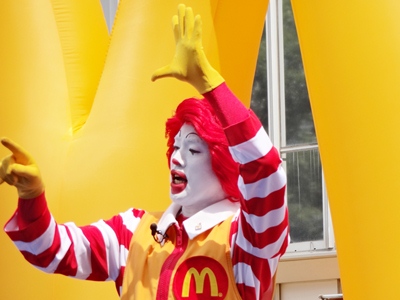 今日は亀ヶ岡八幡宮のお祭り。昨日の願いが通じてか、ステージ設営の時は曇り。 おかげでバテずにすみました。 写真はマクドナルドのドナルドショー。 何度見ても、ちょっと怖い。。。。 ま、ピエロっていうのはそういうものですかね。 気付くと、夏のお祭りステージにドナルドが来るのは4年ぶりでした。 相変わらず子供には人気あります。怖いもの見たさに似たようなものがあるのでしょうか・・・? |