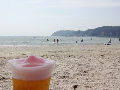 逗子で暑いなんて言っていたら、もっと暑いところの方には怒られてしまいそうですが、、、 逗子には緑があって、海があって、風が爽やかで、夏を満喫するには最高! 写真は、先日の定休日に子供と行った逗子海岸。持っているビールは、「キリンフローズン生」 砂浜も暑いので、せっかくのシャリシャリ感はあまり味わえませんでしたが、泡は最後までしっかり冷たさを保っていました。 この写真、見るだけで暑さも吹き飛びそうですねぇ・・・ 逗子海岸の平日は、思ったよりも人が少なく、とても静かに過ごせました。 場所は、先日もご紹介した、渚橋から入って、利休、88’Bar の前あたり。 フローズン生は、その5つくらいお隣の、日テレ海の家で売っていました。 晴れの日に行かれる方は、パラソルを借りるのをオススメします。(1日1500円也) |