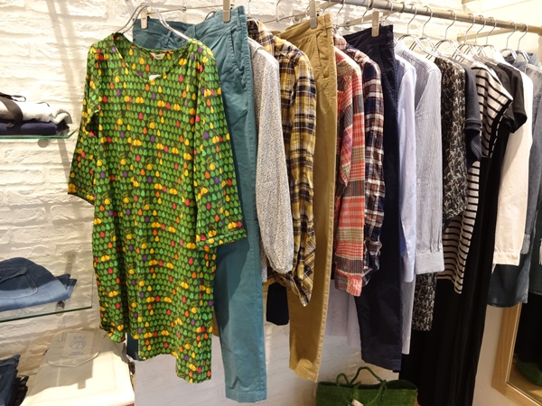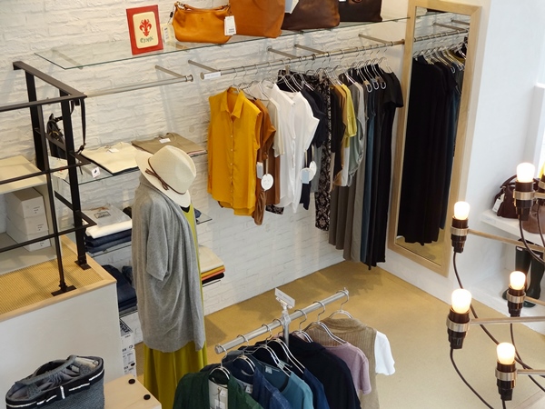 新入荷が増えてきたので、新入荷コーナーを作りました。・・・・と思ったら、妻がFACEBOOKのネタに早速していて、「同じ写真、使わないでよ」と釘をさされた。 なので、アングル変えました。 脚立つかって、天井から、アクロバティカルに・・・ 右端に見えるのは、お店の中央にある、ジノサルファティのバルブランプ。 ちょっと秋を意識した色使いですが、まだまだ涼しげな素材が多いです。 夏休みのお出かけに着ていく服がない〜 という方は、是非チェックしてみて下さい。 詳しくはコチラをどうぞ。 |