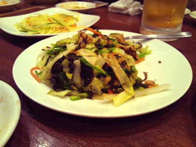 | 先日(9月の15日くらい)、イタリア風キンピラゴボウをこのコーナーでご紹介しましたが、今度はフレンチ風キンピラゴボウを作りました。 これまた子供にはバッチリ好評。ゴボウばかり食べて他のものを食べず、母親にしかられるくらいでした。 ですのでレシピをば・・・ ゴボウを、ジュリエンヌに切って(千切り)、あく抜きしてから下ゆで2時間。 ニンニクと一緒にオリーブオイルで炒める。 なじんできたら、ブランデーでフランべ。 砂糖、醤油で味を整えて出来上がり。 たくさん作って、冷蔵庫で寝かした次の日の方が、味がなじんで美味しかったです。 どこがフレンチ風なんだか良くわかりませんが、ご興味ある方は是非お試しください・・・ |