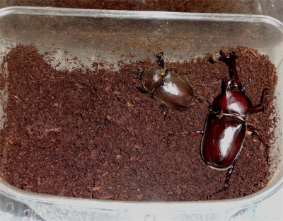 | 昨日、自宅の某不具合をみに、業者がやってきました。 担当者は説明もキチンとしていてとても感じが良く、色々と話をするうちに、小学生の男の子のお子さんがいることが判明! 帰りがけ、ダメ元で聞いてみた。 「カブトムシ、増えちゃって困ってるんですけど、いりませんか?」 「・・・え?、、、い、、、いいんですか?」とその業者。 どうぞどうぞ、と、オス2匹、メス1匹を、100円ショップで買っておいたケースに入れて差し上げました。シメシメ・・・ そして、帰りがけに気になる一言を聞いてしまった。 「昨年もツガイで飼っていたんですけど、すぐに死んじゃって・・・」 (なぬ?すぐに死んじゃった? 聞き捨てならぬ。) 「土は何を入れてました? ちゃんと夜潜れる量でした? 止まり木は入れてました? 水分は足りてました? 餌は何を上げてました?」 聞かずにはいられなかった・・・ 餌、昆虫ゼリーを上げていたけど、たまにスイカの皮とかをあげたらしい。それが原因かも。 「スイカやメロンは水分を取りすぎちゃうから、果物あげるんだったらバナナにして下さい」 と言い、昆虫ゼリーと止まり木もついでに差し上げました。 我ながらおせっかいだと思うけど、これも親心なんでしょうね・・・ 彼らを卵の時代から知ってますから・・・ |