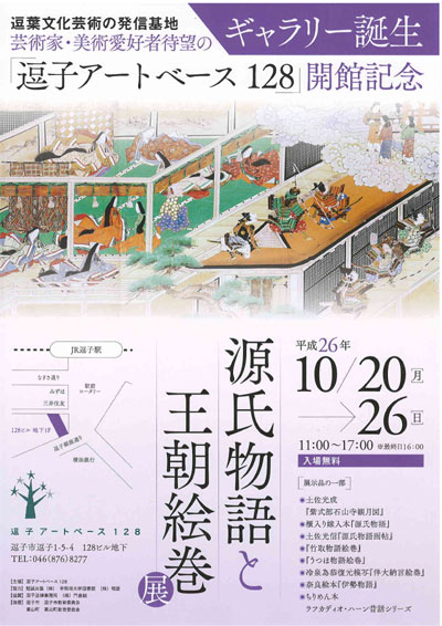 本日、逗子アートベース128が無事オープンしました! そして、「源氏物語と王朝絵巻展」もスタート。オープニングのレセプションですが、月曜日だし、昼間だし、出席率は半数以下だろう、と予測。ギャラリーのお隣、逗子物語さんで着席の会食を予定していたのですが、予測大外れ! なんと9割以上の方が出席のご返信をいただき、返信ハガキに人数欄を設けたので、2名、3名でご参加される方も多く、急遽立食に・・・ お忙しいだろうに、逗子市の平井市長、神奈川県議会議員の近藤大輔氏、逗子市議会議員の菊池俊一氏も皆さんご出席&一言ご挨拶をいただくことができました。 人数オーバーで、至らない点もあったかと思いますが、本当にありがとうございました。 「源氏物語と王朝絵巻展」は、たくさんの方にご覧いただきました。 撮影禁止なのですが、一応主催者に許可もらって写したのが上写真。 学術的価値が高いものが出展されてる中で、特に「伴大納言絵巻」と「ちりめん本」は必見。 伴大納言絵巻は、応天門の変を描いた国宝の絵巻の摸写ですが、国宝では欠落している箇所が大和絵師、冷泉為恭によって描かれていて、公にされたのはなんと!最近の2010年。それが展示されています。 ちりめん本は、ちりめん紙に印刷された他に類を見ない特殊な書物、とのことで、今では作る技術がないのだとか・・・ 実際に見てみると、小さな本に、様々な英語やフランス語、ドイツ語等で日本の昔話が描かれていて、とても可愛らしい本です。 日曜日(26日)の午後4時まで、どなたでも見れますので、この機会にぜひ・・・(入場無料) |