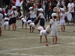 一昨日は、息子(5歳7カ月)の、保育園の運動会。来年の3月に保育園は卒業なので、今回で最後。気付けば保育園で5回目の運動会でした。 最初は、全て親と一緒に出場し、本人も訳も分からず出ていたのが、5歳ともなると勝ち負けの区別もつくし、悔しがるし、緊張もするし、恥ずかしがるし、他の下級生のクラスと比べると、人間って、こんなに早いペースで成長するんだな、と、改めて思いました。 写真は、「組み体操」の一部。 年長さんって、スゴイです。1人ひとり、大きな掛け声もかけるし、ビシッとしてるし、ちゃんと演技してた。 (←と書いて思う。オヤバカですね) 次は12月の音楽発表会。 どれくらいの成長が見れるか、楽しみです。 |