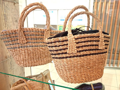 お祭り寄付集め続き。今日某チェーン店に伺ったら、「会社からは出せません」と断られました。まあ寄附はお気持ちですから。仕方ないです。(けどそのお店さん、お祭りの2日間、店頭で大々的に販売してるんですけど。)しょんぼりな愚痴はそれくらいにして・・・ お店は毎日毎日、雑材のカゴバッグが売れています! 色々な種類がありますが、写真は最近店頭に出したカシェリエのもの。素材はアバカです。お値段¥6900+税。 お買いものはコチラからどうぞ。 |