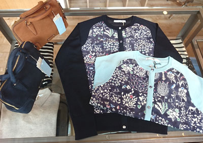 写真はちょっと目を引く、イエリのカーディガン。ニットと布帛のコンビになっていて、この布帛部分がコーデュロイの生地。その上プリントはなんと!リバティプリントといった懲り様。 主役の1枚になりそうですねぇ・・・ 薄手なので、ジャケットやコートのインにもなるので、春先まで使えそうです。 気になるお値段は ¥16,000+税。詳しくはコチラをご覧くださいませ。 ついでに左に映っている小さめのバッグは、オイルレザーの可愛らしいバッグ。 しっとりとした質感で、とっても上品な風合いです。 お値段 ¥17,000+税。 こちらはどうぞ店頭でご確認を。 |