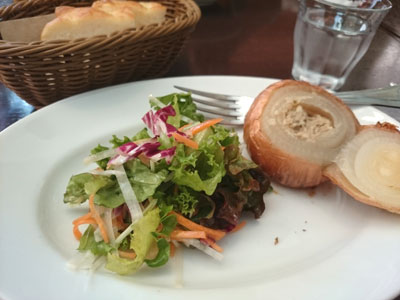 昨日の講演会、「2人に1人ががんになる時代をハッピーに生きる方法」は、とてもためになるお話を聞くことができました。統合医療の第一人者である、川嶋朗先生のお話は、わずか50分でそれはそれはたくさんのお話を聞くことができましたが、中でも一番気になったのは、日本人の平均体温が年々下がっている、ということ。 昭和32年のデータでは、日本人の平均体温は36.82度。現在は36.2度。 体温が下がれば、代謝も悪くなり、免疫力も下がる。 今の日本人は、発生したがん細胞を叩く力も衰えている、ということになります。 癌の治療に数百万かけても、リンパ球(免疫機能を担当する血液細胞)の数が増えなかった患者さんが、湯たんぽで体を温めたら1週間で3倍にも跳ね上がった、という実例もあるんですって。 冷えは万病のもと。食事も、体を温める食材を意識して取ろうと思います。 で、写真は、体を温める食材、たまねぎを丸ごとオーブンで焼いたメニュー。2階のイルノンノさんの、ランチメニューの前菜で出てきた。 中に詰め物がしてあってとても美味しいです。ピエモンテ州の伝統料理なんですって。 レギュラーメニューにあるのかどうかは不明。調べておきます。 |