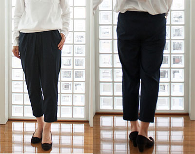 今日は、今一番売れているパンツのご紹介。マルシャルテルの、ウエストゴムのパンツ。 ウエストにギャザーが寄っていて、ゴム部分は裏側に隠れているので、ゴムのパンツとは一見分からない。ゴムなので楽チンですが、見た目はすっきりエレガント。綺麗に見えるので、オフィスワークにも最適です。 メーカーでも相当売れているそうですので、ほとんどの方にフィットするのではないでしょうか? 色は、グレー、キャメル、ネイビー、ブラックの4色有り。 気になるお値段は¥14000+税。 ストライプは12月に追加で入荷する予定です。 詳しくはコチラのページをどうぞ。 |
