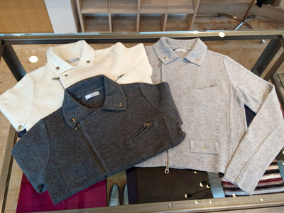 写真は、WEBショップにアップした途端に売れたベアトリスのライダースジャケット。店頭でも試着される方多し・・・ライダースジャケットと言ってもニット地なので、ハードになりすぎず、少し柔らかい印象です。カーディガン感覚で軽く羽織れるので、ちょうど今の時期にピッタリ! 雑誌掲載が決まった・・・との情報を得たので、追加発注をしました!すると、メーカーでも既に追加生産が決まったんですって~~ 今秋冬シーズンの、メガヒットなるか・・・? 気になるお値段、¥16,800+税。 詳しくはコチラのページをどうぞご覧くださいませ。 |