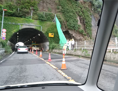 昨日、一昨日と、真夏のように暑いですね~、、、我が家ではせっかく片付けようとして磨いた扇風機が再稼働。そして、エアコンのスイッチも再び入れてしまいました。 そろそろ10月ですし、秋は秋らしい気候になってほしいと思います。 写真は、先日がけ崩れがあって一時通行止めになっていた海沿いの134号。 鎌倉方面から逗子へ向けて。まだ片側一車線通行でしたが、それほど渋滞はありませんでした。 トンネル右の崩れた現場は、道路から見るとぽっかり穴があいたよう。コレ、再度崩れないように工事するには素人目にも大変そうですよね。どうか2次災害がおきませんように。 ちなみに、134号はそろそろ全面通行が可能になるそうですが、この下の、小坪の道路の通行止めは、10月半ば以降まで続くそうです。 |
