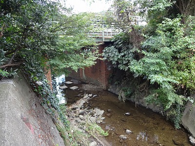 ![]() 六反目橋(ろくたんめばし) 緑がうっそうと茂っていて、覗かないと川の水は見れません。(ずいぶん細くなってきている) |