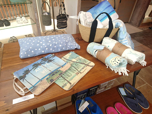 海水浴にいらっしゃったお客様にも、地元のお客様にも、今、注目度ナンバーワンは、写真の海っぽいグッズ。ラウンドタイプのビーチタオルは、先日(7月10日頃)ご紹介しましたが、その隣にあるのは空気が入れられるクッションピロー。ビーチリゾートにはぴったりですね!外側はコットン100%なので、気持ちいい・・・ コレ、キャンプの時、テントで使うのもいいかも・・・(いや、良く考えなきゃ・・・) お値段は¥4,500+税。 詳しくはコチラのページをどうぞ。 それはそうと、今週の水、木(8月2日、3日)、お店はプチ夏休みをいただきます。(それを利用してキャンプ予定だったのですが・・・て、天気が・・・) 小笠原近くに停滞している台風5号、なんだか本州に接近の可能性も出てきたみたいですね。 どうか、近づいてきませんように・・・ |