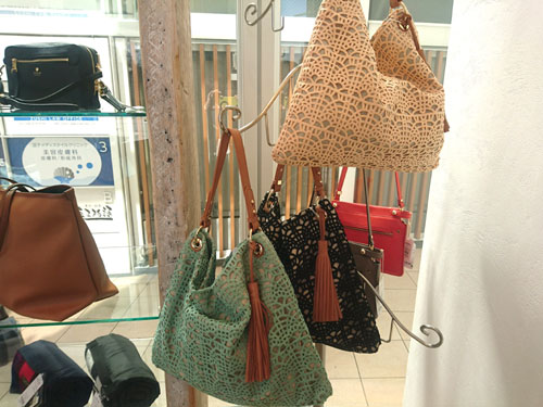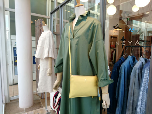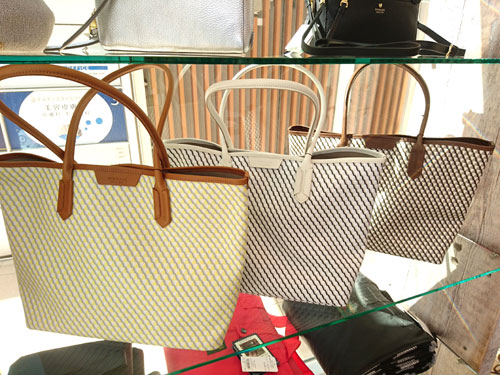春バッグの続き。ここのところ、注目度が高いのが、写真の大き目トートバッグ。 お店の、通り抜け通路側のガラス面に陳列してあるので、外からじっくり見やすいというのもあるのですが、ふと視線を感じると、このバッグをじーーっ と見ているお客様がいらっしゃる・・・ 目が合ったりして、会釈するとお客様は逃げて行ってしまう・・・ まあ、じっくり商品を観察したい時には、店員は邪魔ですよね。 というわけで、WEBでも販売していますので、もっとじっくりご覧になりたい方はコチラのページをどうぞ。 ちなみに、お値段、¥16,000+税。 A4ノートパソコンがすっぽり入って、幾何学柄も細かくさわやか、PVC加工で雨にも強いので、春のお仕事バッグにも是非・・・ |