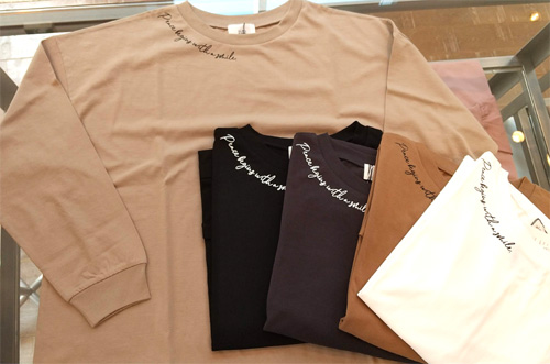 今日も暑くて暑くて・・・ 外に出ると汗だくになって、秋物どころではありませんが、メーカーさんの話によると、人気のある商品は既に完売のものもあるとか・・・写真は、そんな商品のうちの一つ。SIROの長そでTシャツ。 クルーネックの襟元のプリントがポイントです。 ゆったりしたドロップショルダーのシルエットで、今年らしく着ていただけると思います。 お値段、¥7,900+税。 詳しくはコチラのページを。 色は、白、グレージュ、モカ、チャコール、ブラック有り。完売したら追加はできなそうなので、気になる方はお早めにどうぞ。 |