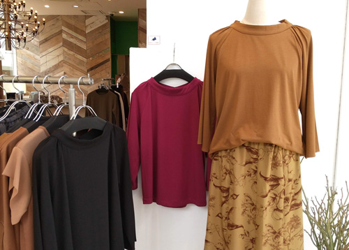 このまま暑い日がずっと続いたらどうしよう・・・ な〜んて実は心配していたので、今日は多くのお客様にお買い上げいただきまして、良かったです! ありがとうございます! というわけで、今の注目度が高い商品のご紹介を。 写真は、ブラーミンの7分袖のカットソー。 ゆるく立ち上がった襟と、肩のギャザー、広めの袖がポイント。 コットンレーヨン素材で、すぐに着ていただけると思います。 気になるお値段は、¥6,900+税。 詳しくはコチラのページをどうぞ! 色は、写真のとおり、キャメル、ローズ、ブラックの3色あります。 |