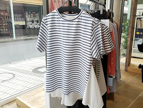 さて。写真はそんなコロナ禍でも元気なブランド、ミランカのカットソー。 一見爽やかなボーダーカットソーですが、良〜く見るとただのカットソーではありません。 後ろが布帛で切り替えてあって、裾がイレギュラーに広がっているデザイン。 ストレッチが効いていて着やすく、ウォッシャブルタイプでデイリーに着まわせます。 お値段、¥11,000(税込) 詳しくはコチラのページをどうぞ。 |