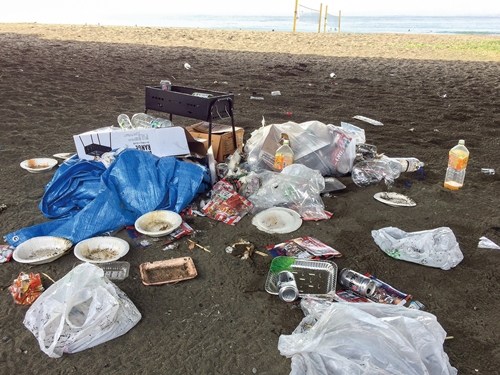 逗子海岸に向かう方も多くいらっしゃいますが、ゴミはちゃんと持ち帰って〜〜〜!! 写真は、バーベキューゴミをそのまま捨てて行った残骸。バーベキューグリルまで・・・ 逗子海岸ではありませんが、かながわ海岸美化財団のページよりお借りしました。嘆かわしい・・・ |
