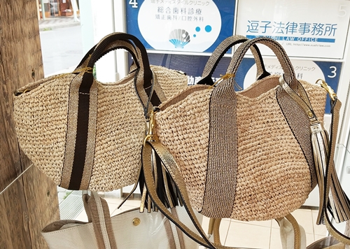 そして写真は今日のような青空と日差しが似合うヴィオラドーロのバッグ。 アバカを丁寧に編み上げ、柔らかいレザーのハンドルと組み合わせたタイプ。 大人っぽく上品に持っていただけます。 レザータッセルも目を引くポイント。 お値段、¥16,500(税込) 詳しくはコチラのページをどうぞ。 |