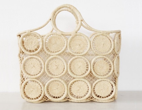 そりゃそうですよね。巷ではセール、スタートしていますもんね。 まだ未定、ですが、昨年同様、混雑を避けるため、「セールスタート!」という日は決めずに、徐々にセールのラックが増えて行く感じを予定しています。 WEBショップのセール日程などは、決まりましたらまたお知らせ致します。 写真はルヴォヤージュエンパニーヤという、フランスのデザイナーによるブランド。毎年人気で、ファンの方もいらっしゃいます。 こちらは立体的なサークルモチーフが目を引きます! ナチュラル素材で、これからの季節にピッタリ。 お値段、¥9,790(税込) 詳しくはコチラのページをどうぞ。 雑貨類のほとんどはセールにはなりませんので、どうぞ安心してご購入下さい・・・ |