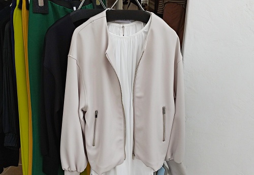 これは大変・・・と、カシミアのニットを着てきたら、日中は暑くて暑くて・・・ もう春の日差しになっているから、気温が低くても真冬の格好には注意しないといけませんね。 とうわけで、写真は春にピッタリなディニテコリエのブルゾン。 前から見るとシンプルなジップアップブルゾンですが、バックスタイルにはフリルがあしらってあり、 後ろもジップでフリルの見え方を調節できる技ありアイティム。 お値段は、¥17,600(税込み) 詳しくはコチラのページをどうぞ。 |