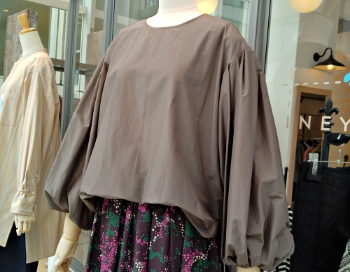 今朝はテレビで月見バーガーの特集もやっていましたし、早く本格的な秋の気候になってもらいたいものです。 というわけで、店頭は既に本格的な秋の装いです。 写真はマイカ&ディールのブラウス。バルーンスリーブと、前後差のある丈がポイント。袖口がゴム入りでたくしあげられるので、寒かったり暑かったりの今のような季節にも安心して着られます。 お値段、¥19,800(税込み) 詳しくはコチラのページをどうぞ。 ついでに、スカートはエスペラックのもので、落ち着いた色の小花柄&適度な落ち感で、コーディネートの主役になりそうです。 お値段は¥15,400(税込み) 詳しくはコチラのページをどうぞ。 |