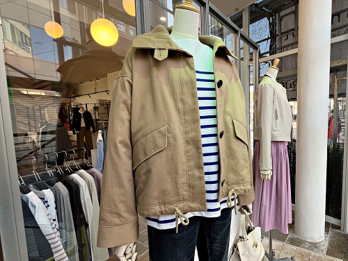昨日の午後からお店は入店されるお客様が増えて大忙し。 3月半ばのマイナス分を取り戻せるかな・・・? 今年は少し桜も遅いですが、桜満開の入学式、始業式が期待できるのではないでしょうか・・・? こう春らしいと、もう洋服も春一色! というわけで、写真はディニテコリエの薄手のブルゾン。 少し光沢があって、僅かに透け感もあり、上品な印象です。 背中は生地を重ねたようなレイヤードデザイン、袖口はリブ仕上げで腕まくりも楽ちん。 裾のドローストリングでシルエットの調整も可能です。 色々使える技ありアイティムだと思います。 お値段、¥15,400(税込み) 詳しくはコチラのページをどうぞ。 |