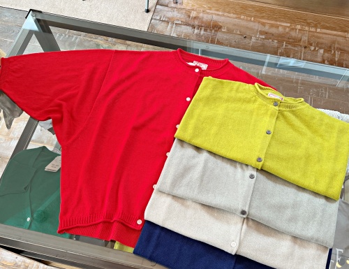 朝の日経新聞プラス1に、「Z世代に通じる?昭和の言葉」というランキングがあって、試しにZ世代の息子(高2)に聞いてみた。「バタンキューって意味知ってる?」 「オバQじゃなくて?」 「ドロンしますは知ってる?」 「オバQのドロンパなら・・・」 うーむ。なぜオバQ? オバQこそ昭和なのに・・・ その他、「話がピーマン」「四当五落」「ウルトラC」「行って来い」「ロハ」・・・ 普通に使うけど、もう若者には通じないのでしょう か・・・? さて、写真はここ数年人気の、マオメイドのリネン100%カーデに、ドルマンスリーブバージョンが登場しました! 袖ぐりがゆったりで、7分袖で、夏の日差し除けや冷房対策にはこちらの方が使いやすいかも。 お値段、¥14,850(税込み) 詳しくはコチ ラのページをご覧くださいませ。 |