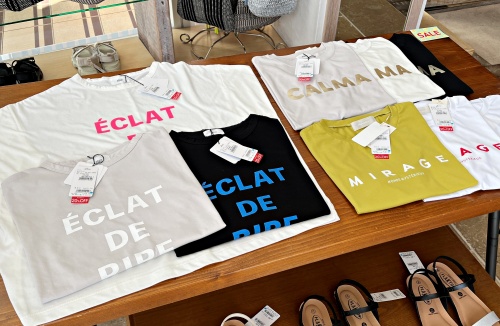 そして、WEBショップのセールもスタートしていますので、狙っていたものがありましたらこの機会に是非・・・ 写真は、セールのTシャツを集めた売り場。 左から、 ÉCLAT DE RIRE ロゴTシャツ ¥9,790→¥7,832(税込み) CALMA ロゴTシャツ ¥8,800→¥7,040(税込み) MIRAGE ロゴTシャツ ¥8,580→¥6,864(税込み) Tシャツは洗い替えに何枚あってもいいですよね!在庫あるうちに是非とも! |