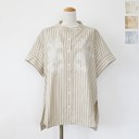 PASSIONE (パシオーネ) シャツ ストライプ 袖タック ショート サイドスリット ウォッシャブル 616955