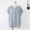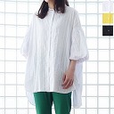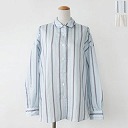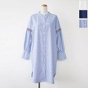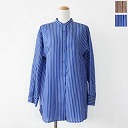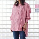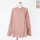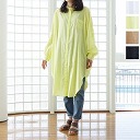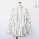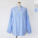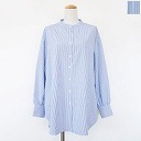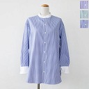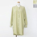 cafune (カフネ) バンドカラー 長袖 ストライプ チュニック丈 ストレッチ ラウンドヘムシャツ 335949 |