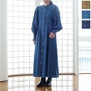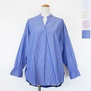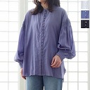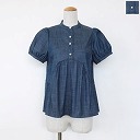 PASSIONE (パシオーネ) デニム ロング バンドカラー 袖リブ コットン ブラウス 216979 |