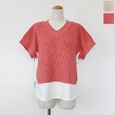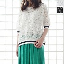 MyLanka (ミランカ) ライン リブ切替 5分袖 ウォッシャブル レース ブラウス M17370 |