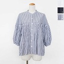 Dignite collier (ディニテコリエ) バルーンスリーブ ギャザー フレアシルエット バンドカラー ブラウス TK-805200 |