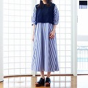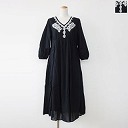 PASSIONE (パシオーネ) 異素材切替 パフスリーブ キーネック コットンロング ワンピース 226105 |