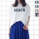 MyLanka (ミランカ) 刺繍 半袖 ドロップショルダー サイドスリット ロゴ Tシャツ BEACH M87211 |