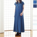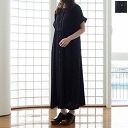 PASSIONE (パシオーネ) スキッパー フレアシルエット 半袖 バックボタン ロング ワンピース 226115 |
