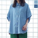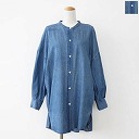 D.M.G (ドミンゴ) ライトオンス デニム スタンドカラー ドロップショルダー ラウンドヘム シャツ 16-0695E |