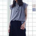 PASSIONE (パシオーネ) 袖フリル ノーカラー 長袖 サイドスリット ストレッチ ブラウス 336919 |