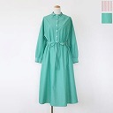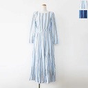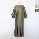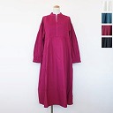 Vent d'ouest par Le minor (ルミノア) フレンチリネン バンドカラー 長袖 ギャザー ワンピース EL11205 |