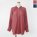 PASSIONE (パシオーネ) パールボタン ギャザー 長袖 スタンドカラー ウォッシャブルブラウス 236961 |