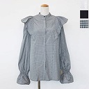 MyLanka (ミランカ) スタンドカラー ボリュームスリーブ サイドスリット コットン ブラウス M17101 |