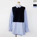 Dignite collier (ディニテコリエ) 異素材切替 スキッパー 長袖 ドロップショルダー ブラウス UMC-804709 |