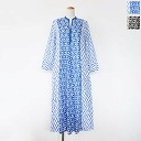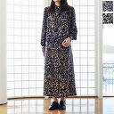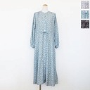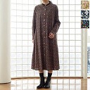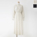 MyLanka (ミランカ) 小花柄 バンドカラー 長袖 バックウエストゴム ロング ワンピース M67101 |