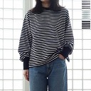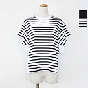 LE MELANGE (ルメランジュ) ボーダー ドロップショルダー ラウンドヘム オーガニックコットン Tシャツ 8321011 |