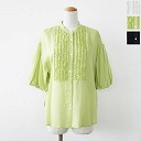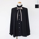 BRAHMIN (ブラーミン) ケミカルレース ピンタック バンドカラー リボン サイドスリット ブラウス B18305 |