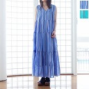 LE MELANGE (ルメランジュ) フレンチリネン ギャザー サイドスリット ロング キャミ ワンピース 8323204 |