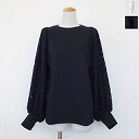 Priority (プライオリティ) 袖レース クルーネック ウォッシャブル ニット P21280 |