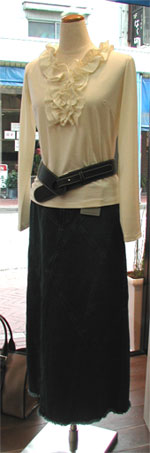 | お取引先メーカーの、Oさんが突然来店。 Oさんとは、ウチの店が品揃えを変える決意をさせてくれた方で、只者じゃぁありません。(2001年11月12日のひとりごと参照) さし色はありますね、ボリューム感もありますなどなど。。。などなど、まるで抜き打ちチェック。「愛の貧乏脱出大作戦」の、”その後”を思い出してしまいました。 珠屋さんに行ってお茶を飲みながらいろいろお話をしていると、写真の白ジャケットや、ちょっと変わったスカートが、自由が丘や成城などで売れていますよ、と。 遠いところせっかくいらして頂いたのに、会計の伝票を取るのが一瞬遅れ、コーヒーごちそうになってしまいました。ふふっふ・・・ それにしても、明日、展示会で会うのに、今日来るなんて、絶対に抜き打ちチェックを狙っていると思いませんか?? |