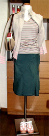 気が付くとまた1週間、、、週2くらいで更新しようという気持ちはあるのですが。。。 さて。3月16日(日)には、「あっぱれ神奈川大行進」で、無事に亥子屋が放送されました。画面でみると、そんなに暗〜い感じでもなかったのでイメージダウンにはならなそうでした。テレビ局がビデオを送ってくれるらしいので、見損ねた方にはお貸ししますよ。(笑) 左写真、 ジップアップニット /ブラーミン 12000円 ボーダーカットソー/ ベアトリス 6900円 デニムスカート/ブラーミン 13800円 レザースニーカー/ハリス 13800円 三日月形バッグ/ブラーミン 15800円 です。 |