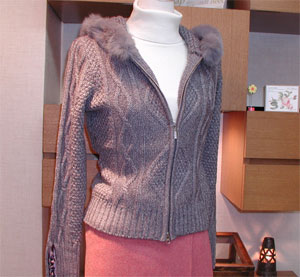 皆様、このページに、商品の画像をご期待されているようで。。。。 こんなフードにフォックスファーがついた、可愛らしいけど大人っぽいジップアップニットジャケットも入荷しています。 ●ベアトリスフォックスファージップアップニット ¥23000(税込み¥24150) 他に、ホワイト(E98611A38)有り。 ダブルジップな上に、袖口はサテン地のボタンが7個ついているところが良いです。 |
